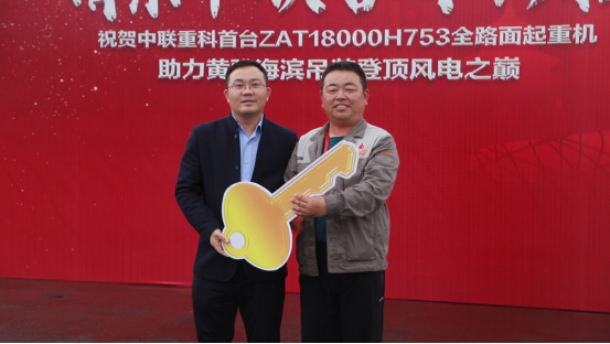 交付仪式上,中联重科起重机事业部国内营销公司汽车吊总监唐启辉先生对黄骅市海滨吊装安装工程有限公司表示热烈祝贺,并将象征着财富的“金钥匙”亲自交到客户代表手中。2019年7月,黄骅市海滨吊装与中联重科首次合作购买800吨汽车吊,两家公司由此结缘,成为事业上的伙伴,而本次交付的中联重科ZAT18000H753全地面起重机是目前全球量产最大起重量的轮式起重机,见证着两家公司的友谊又迎来了全新的高度。黄骅市海滨吊装安装工程有限公司是河北地区规模大、实力强的吊装公司,具有极大的影响力和发展潜力,是吊装行业冉冉升起的一颗明星,此次选择中联重科最新款1800吨全地面起重机,代表着行业标杆客户对我司产品和品牌的高度认可,是两家公司强强联合的进一步深化。