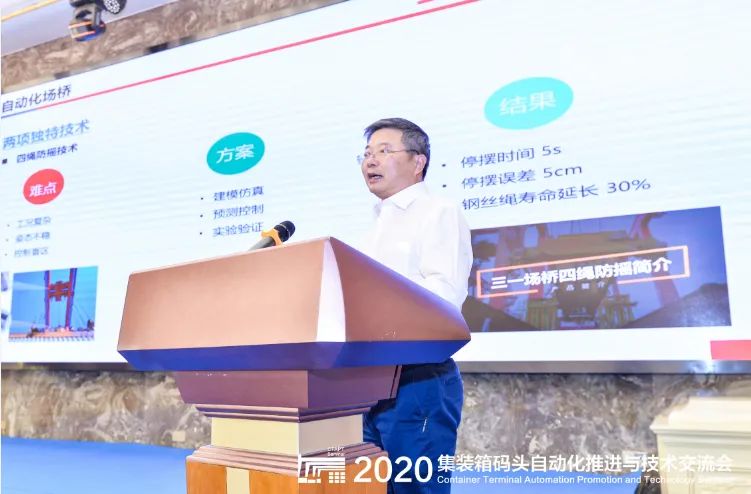 唐修俊博士介绍,三一已实现四绳电子防摇、全自动抓放箱、TCS等核心技术的体系化,拥有远程系统、通讯系统、安全系统等整体系统的自主集成能力,可实现技术标准化、组件模块化、施工规范化、队伍专业化的批量场桥自动化改造。
