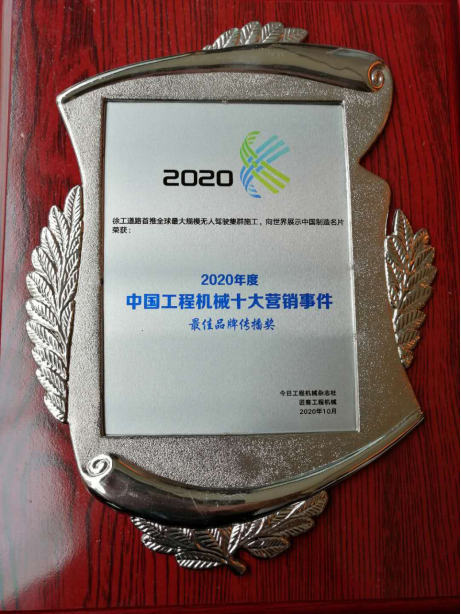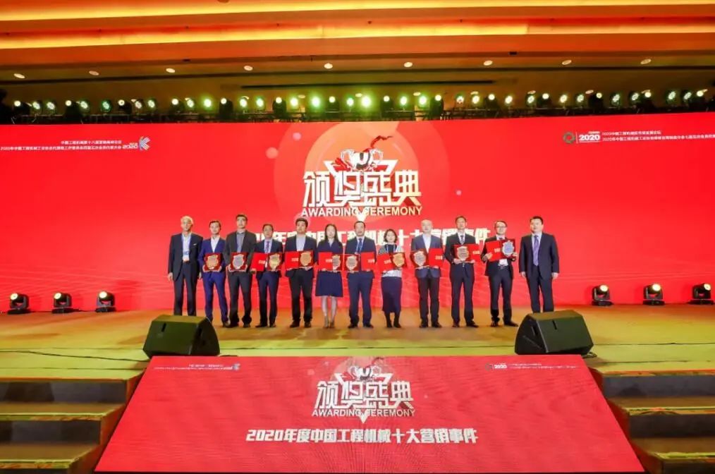 凭借“线上电商+直播带货”新型营销模式,徐工挖机在大会上一举斩获“2020年中国工程机械十大营销事件”最佳品牌传播奖。