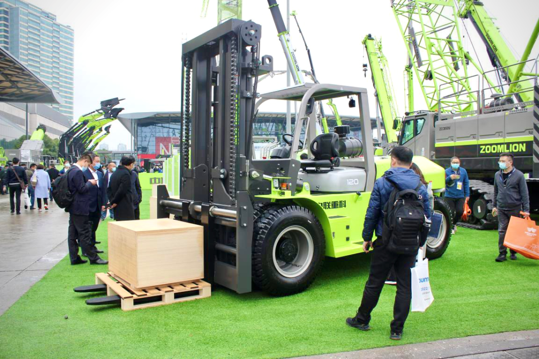 在中联重科展区,工业车辆产品作为中联重科小绿奇迹军团的成员员,昂首待阅!