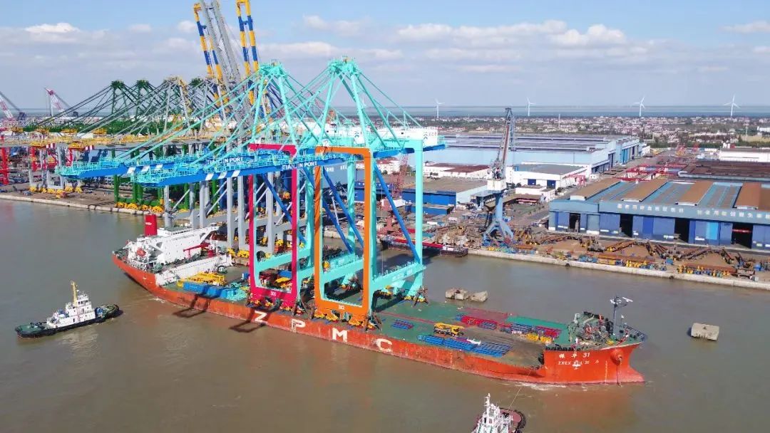 11月20日,振华重工团队顺利完成天津港北疆港区C段智能化集装箱码头项目首批2台自动化岸桥卸船。