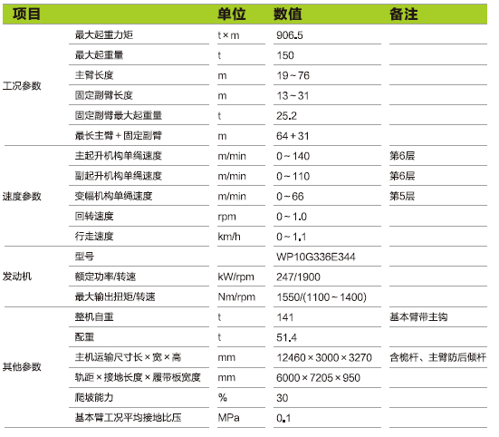 6m大轨距,起重力矩达906.5tm,性能更卓越;
