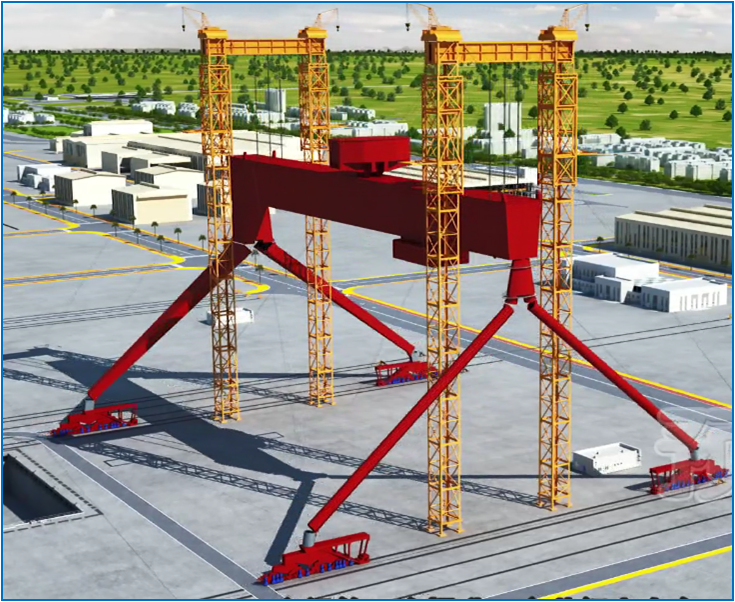 近日,沙特子公司与山东电建签署了沙特萨拉曼国王国际综合港务设施项目1台1600吨和3台500吨龙门吊的现场总装项目。1600吨龙门吊自重约6701吨,轨距170米,起升高度113.5米;500吨龙门吊自重约3771吨,轨距170米,起升高度83米。子公司负责现场总装工作。