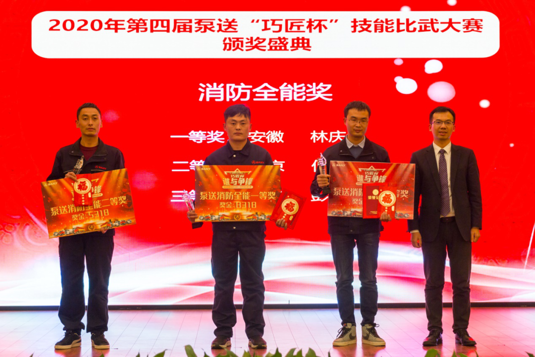 来自江西的龙彬、江苏的常桂林、与广西的董建华心闲手敏,分别将2020年泵送服务技能比武大赛服务新人奖的一等奖、二等奖与三等奖收入麾下。而来自安徽的林庆胤、北京何峰与重庆彭策理则凭借着对消防车的熟练操作,获得了消防车全能奖的前三甲。