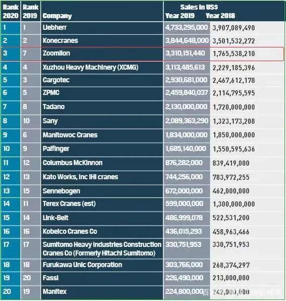 转载 2020-12-11 11:01 中联重科起重机 来源:中联重科起重机近日,英国KHL集团发布了2020年度的全球起重机械制造商20强排行榜《ICM20》。榜单显示,中联重科起重机械销售额位列全球第三、中国第一。该榜单的发布,再一次彰显了中联重科在起重机械领域的强大实力。