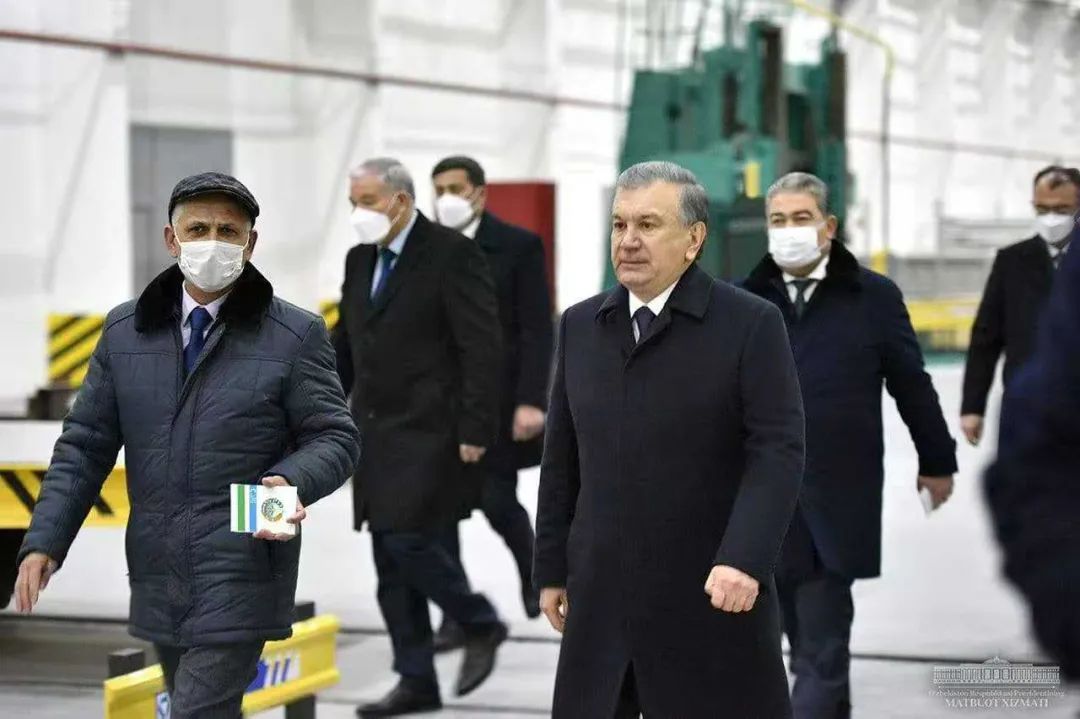 在参观完挖掘机焊接、加工、装配生产线后,米尔济约耶夫总统对徐工投资的先进设备和先进制造技术表示高度赞赏,对合资公司当前的经营和发展情况很满意,要求政府相关部门及花拉子模州要支持好合资公司发展。米尔济约耶夫总统还亲切问候了合资公司中方经理陈帅等人。