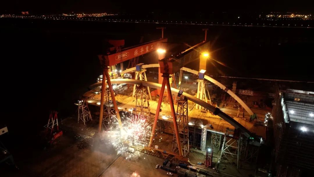 11月28日,振华重工参建的香港将军澳大桥主拱顺利合龙。目前项目部正全员冲刺,确保实现主桥整桥发运的节点。香港将军澳大桥主拱为外飘式蝴蝶拱,材质为S690QL高强度钢,分为4个拱脚和6个大节段进行分步吊装接合,是目前世界首个由S690QL高强度钢打造、并在厂内进行整桥总拼的钢拱桥。