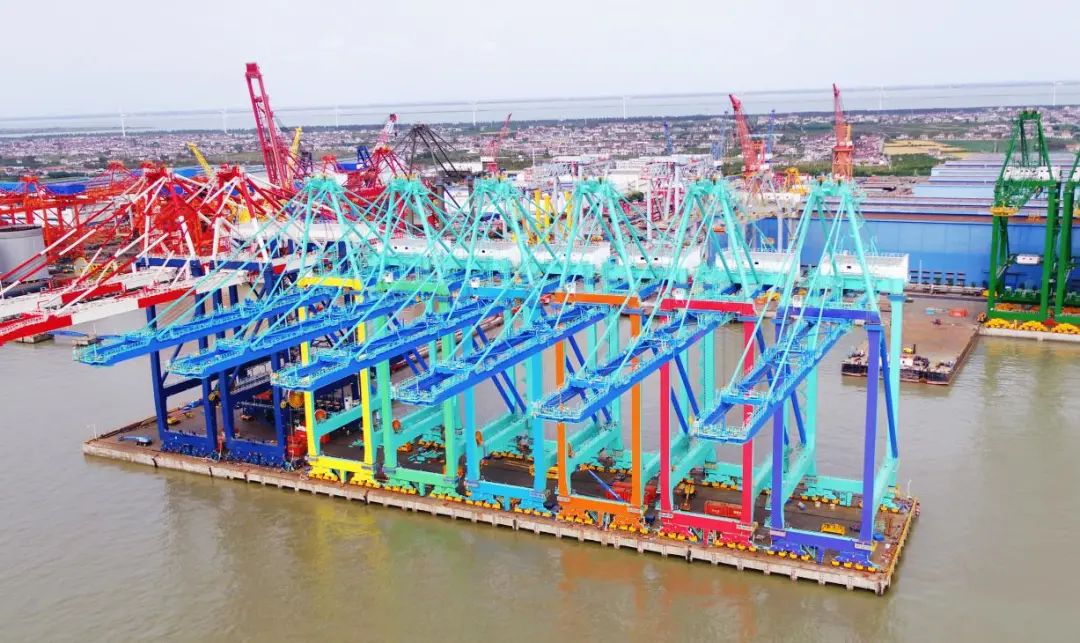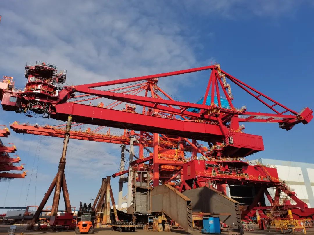 天津港北疆港区C段智能化集装箱码头项目包括6台彩虹色岸桥,属短周期项目。该项目自2020年5月中旬着手生产准备,6月初首件铺板报验并全面开工,8月底总装1号机,11月13日第一船2台设备发运,剩下4台设备预计12月中下旬发运。