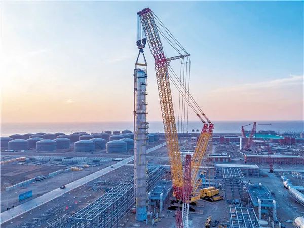 在这方面,徐工当仁不让,国家发改委布局的中国七大世界级石化产业基地建设中,“世界第一吊”XGC88000已经先后服务了其中五个项目:大连恒力、连云港盛虹、福建古雷、浙江宁波渔山岛、广东惠州大亚湾项目。