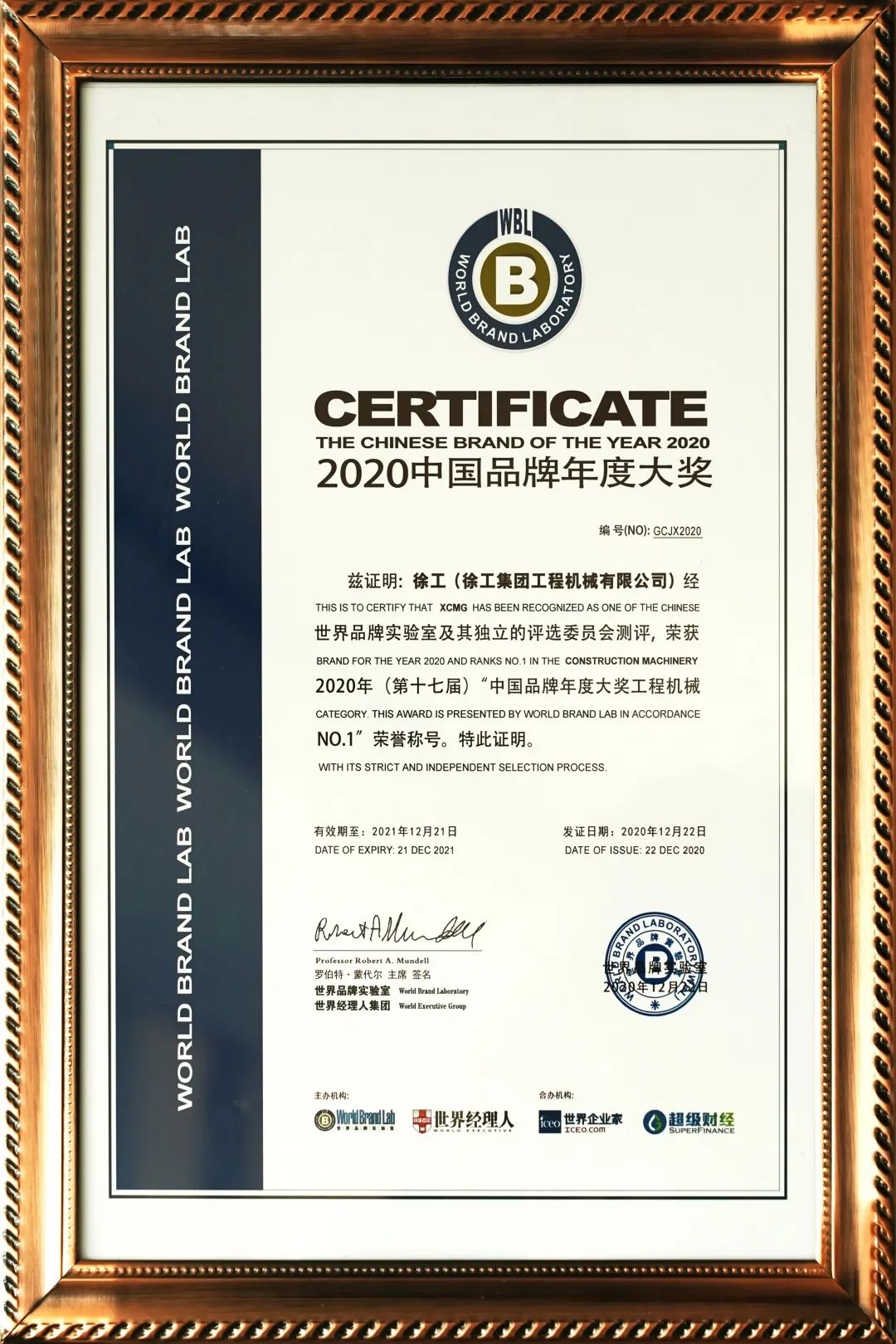 “徐工(XCMG)”连续两年荣登世界品牌500强榜单,位列总榜第409名,首次摘得“2020年度中国品牌年度大奖NO.1”,也是中国工程机械行业唯一企业。