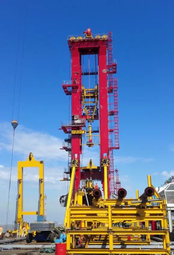 该项目以满足深海油气井口间短距离小管径管道铺设需求和水下设施安装需求为主要目标。在项目实施中,振华重工自主研制了国内首台深海轻型J型铺管系统工程样机,并完成相关核心技术的专题研究。该铺管系统最大铺管水深1000米,最大静态管束张力200吨,铺设管径范围4.5至12英寸,单次最多铺设双节管,具备水下终端PLET的安装能力。
