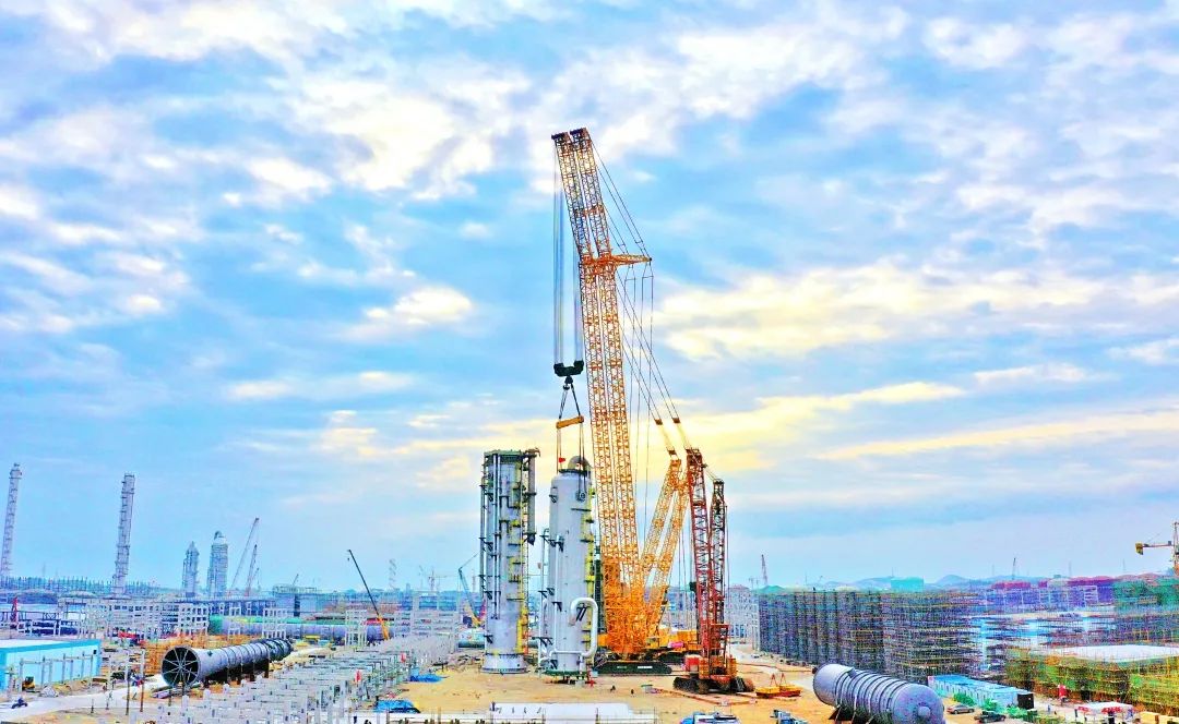 2020年4月“世界第一吊”徐工4000吨级履带起重机XGC88000在古雷炼化一体化项目中力擎全球最大洗涤塔
