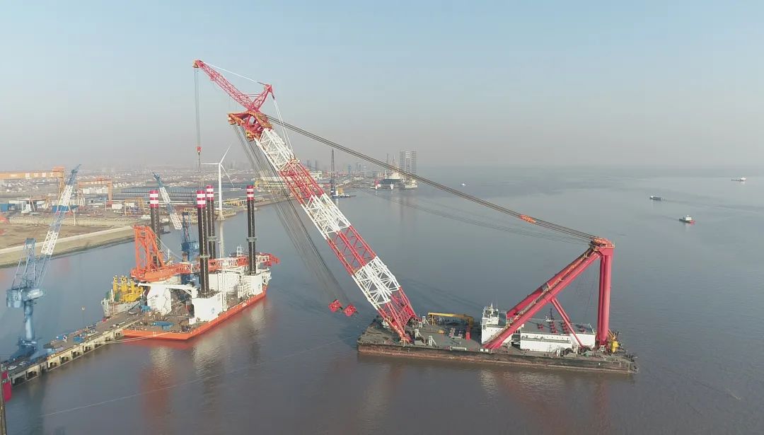 振华重工完成1200吨插桩式抢险打捞工程船桩腿吊装