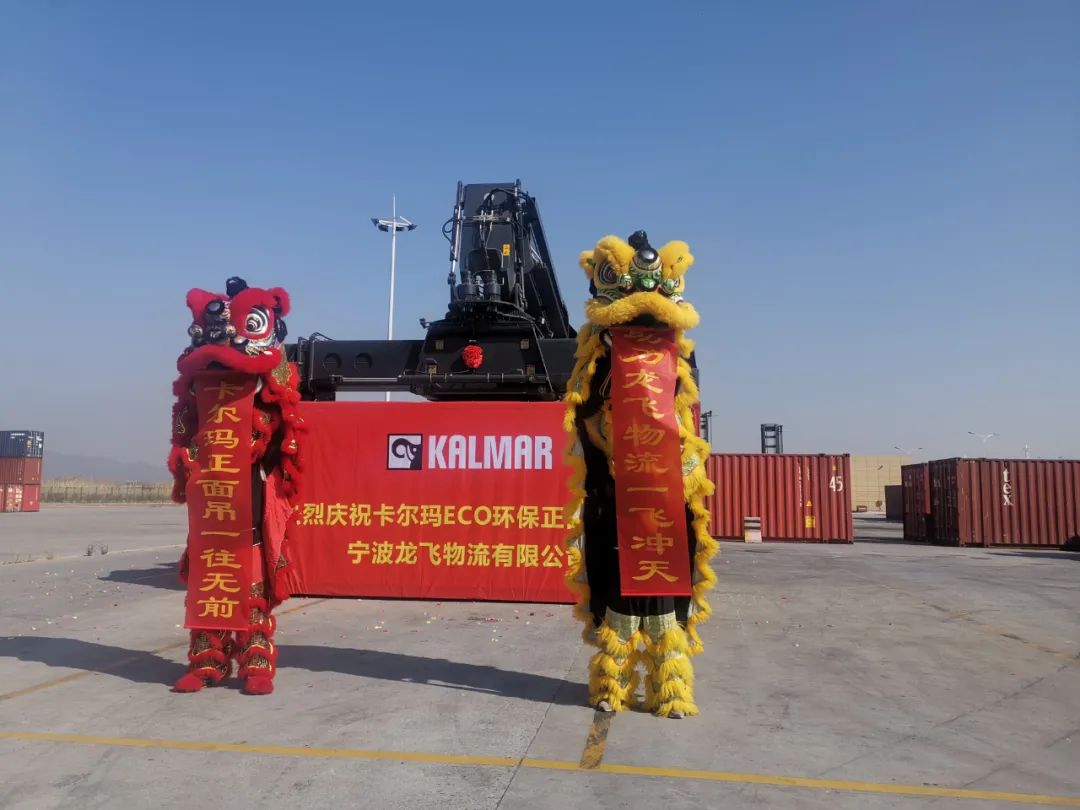热烈祝贺卡尔玛ECO环保正面吊交付至宁波龙飞物流有限公司