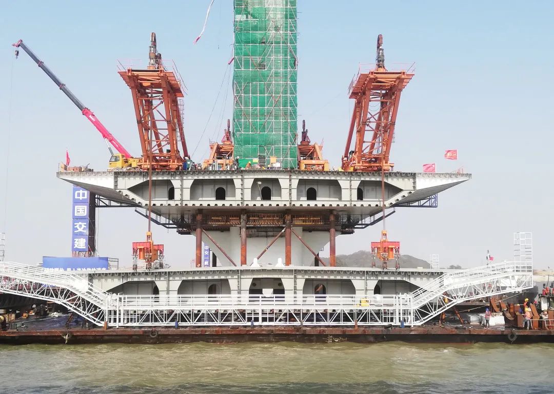 在桥梁架设期间,振华团队克服浮吊设备、船运周期、天气潮汐等诸多不利因素,与客户积极沟通,解决吊装施工、质量精控等难题,确保项目顺利推进。