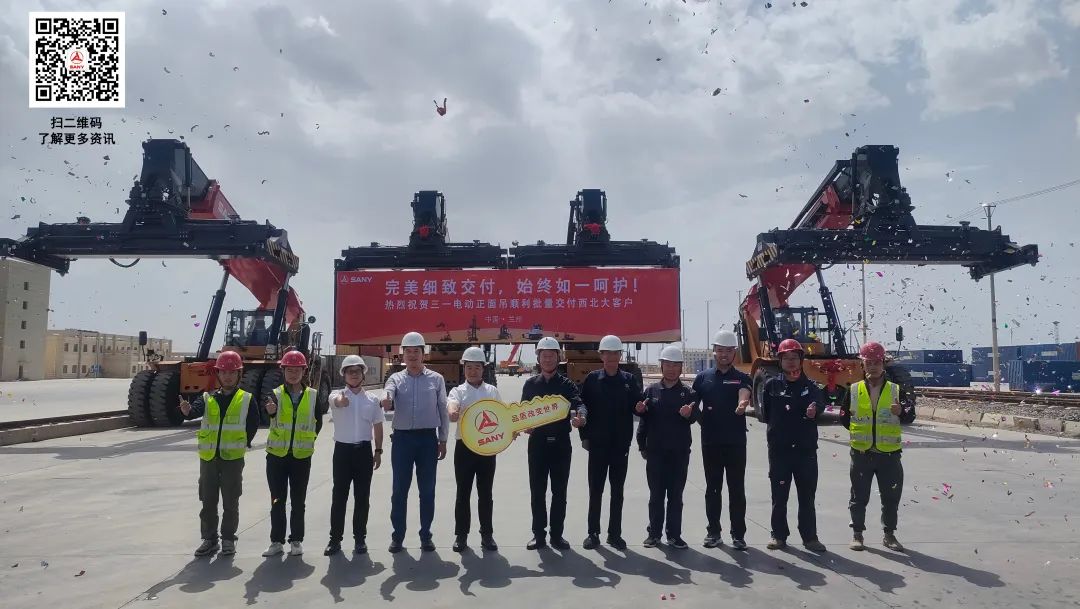 日前,三一顺利向西北某大客户交付4台正面吊,其中包括2台电动正面吊,帮助客户加速打造“绿色低碳”内陆港。