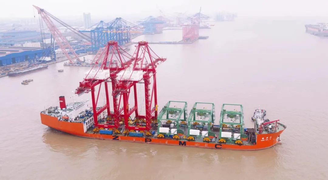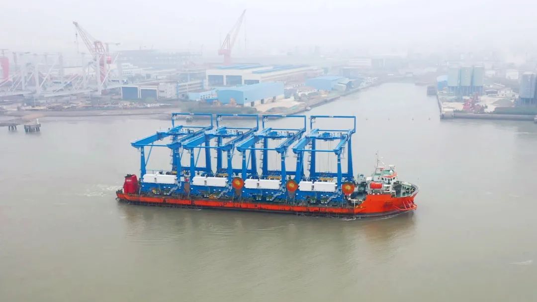 3月18日,“振华15”轮装载着马士基印度GTI码头项目首批2台岸桥和3台轨道吊按既定时间从长兴分公司发运。