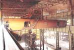 铸造起重机是冶炼车间的主要生产设备之一,它将从高炉车间运来的铁水倒入混铁炉或从高炉车间运来的铁水直接倒入转炉,在转炉或平炉车间,进行连续铸造或供浇铸钢锭之用。主起升高速运行以适应热装热送高生产率,采用定子调压或变频调速方案可实现1:10或其他调速范围,以满足快速运行和准确定位的要求。该起重机设有独立驱动的主副小车,主小车设置固定间距龙门吊钩,吊运钢包,副小车可用来倾翻钢包或做其它辅助性的吊运作业,铸造起重机采用安全可靠的起升机构,并可在司机室和车间显示出所吊物之重量。