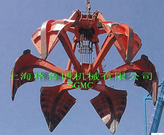 与起重机连接方式:抓斗的四根钢丝绳分别与起重机上的钢丝绳连接就能使用。