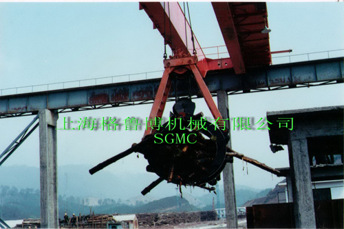 木材抓斗是一种取代人力从事原木捆扎装卸的有效工具。抓斗结构简单,操作方便,效率高,通过起重机的起升机构的上下实行抓斗开闭。