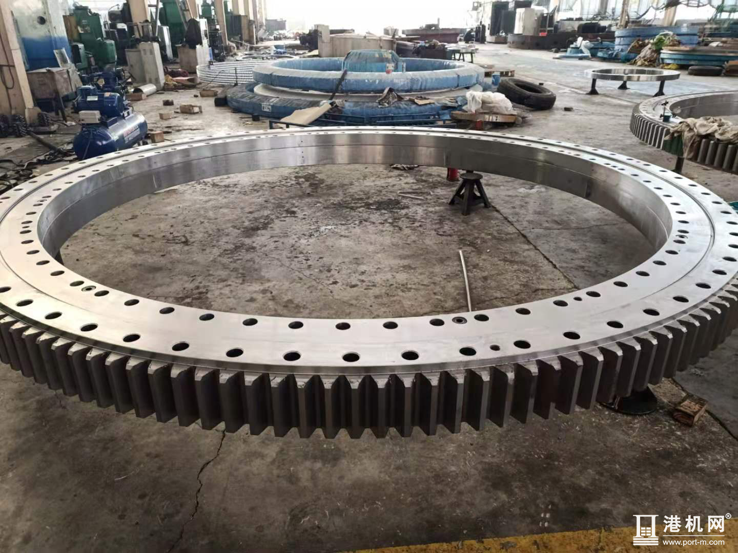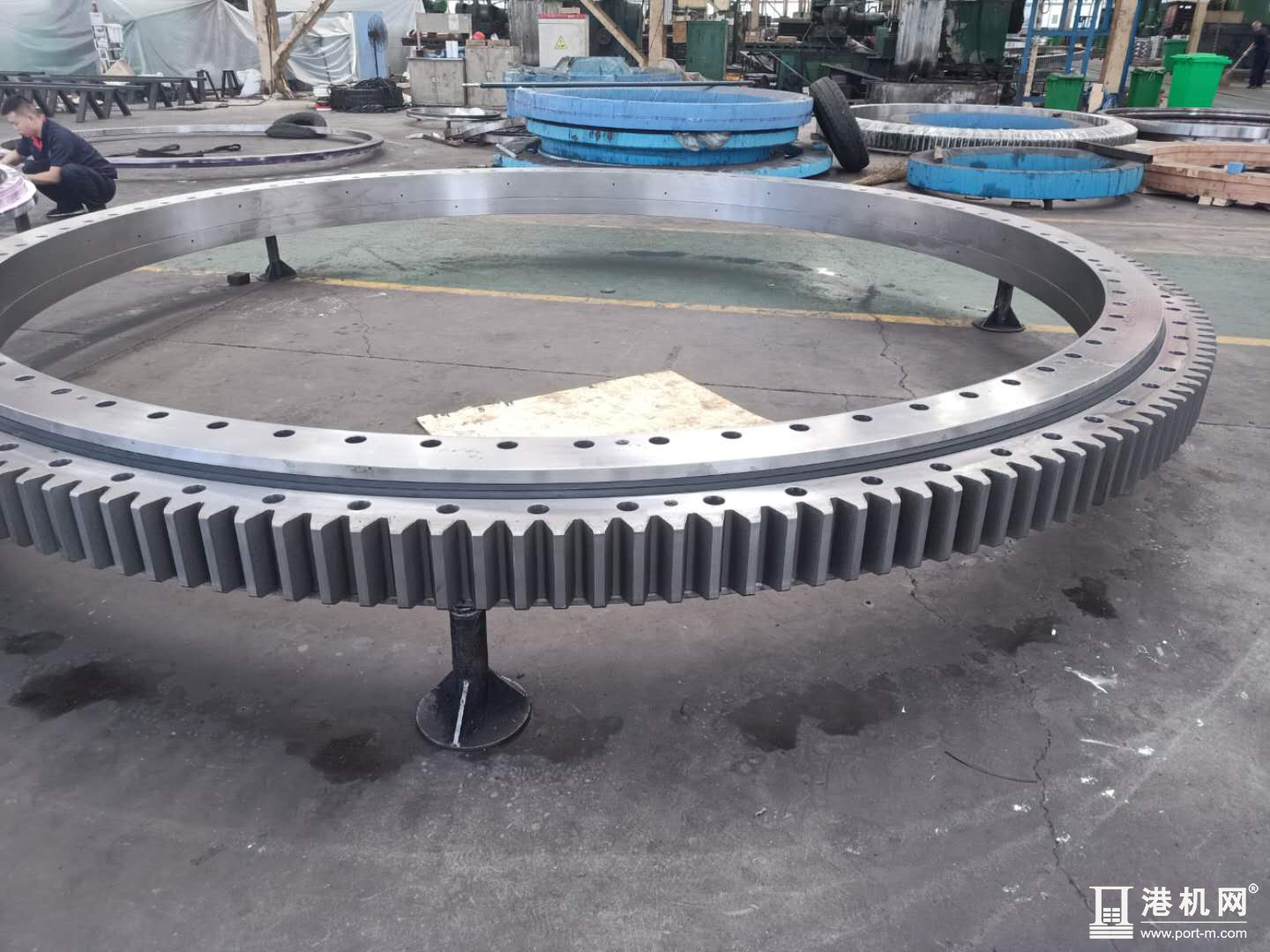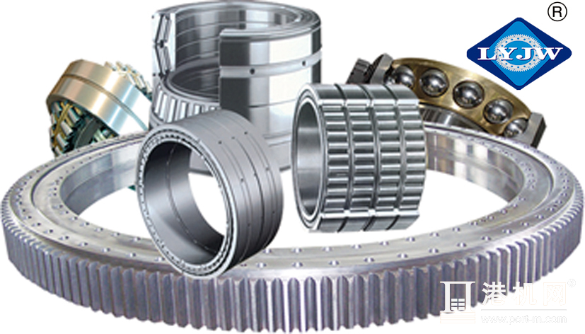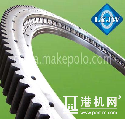 三排圆柱滚子组合转盘轴承主要由内圈、外圈、三排滚子、保持架(隔离块)、密封装置等零件组成。该结构的轴向载荷和径向载荷分别由不同滚子承受,其中轴向载荷和倾覆力矩由轴线水平放置的两组滚子承受,径向载荷由轴线垂直放置的一组滚子承受。在相同外形尺寸条件下其承载能力很强的轴承。