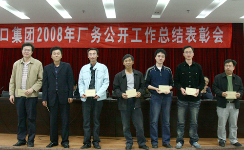 4月24日,集团公司召开2008年度厂务公开工作暨表彰会,会议对2008年度厂务公开工作进行了总结,对今年的厂务公开工作进行了安排部。各基层单位工会主席参加会议,集团公司工会主席兼纪委书记王毅作工作总结,集团公司党委书记谢世贵出席会议并讲话。