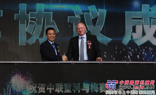 巡展启动仪式上,中联重科再次向业内展示全球最大混凝土机械制造商的雄厚实力与魄力,与全球顶级重卡底盘制造商德国梅赛德斯–奔驰公司签署战略合作协议,再度采购奔驰底盘2500台,这是继2011年采购数亿欧元底盘后双方的又一次合作,也是迄今为止双方签署的最为重大的订购协议,标志着双方友好互利合作进入了一个全新阶段。目前,中联重科已经成为梅赛德斯–奔驰公司全球最大客户。