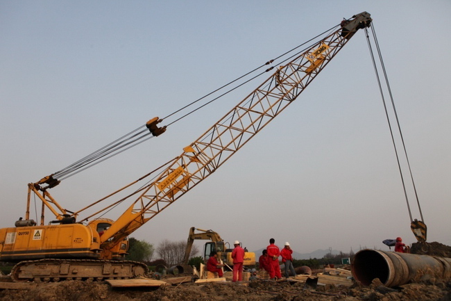 近日,西气东输二线南昌——上海支干线管道工程全线贯通,经管道施工方介绍称徐工的履带吊、起重机等系列设备伴随着该项工程已经共同工作了20个月,一举攻克了全长815km的华东能源通道,建成后输气量将达到100亿方/年。