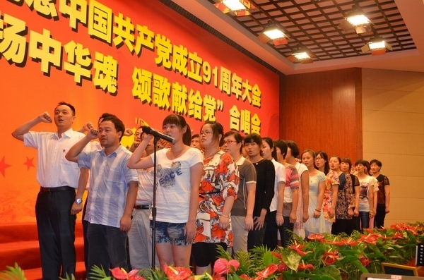 随后的“弘扬中华魂 颂歌献给党”合唱会上,远东各部门、各生产厂员工组成的合唱团首先登台献唱“井冈山”。歌声嘹亮,热情澎湃,革命壮烈之情豪迈升起,全场观众都被这激情澎湃的歌声振奋了。随之一首“咋们工人有力量”又将全场气氛推向高潮。当歌声随着音乐戛然而止的刹那,全场观众都报以热烈的掌声。