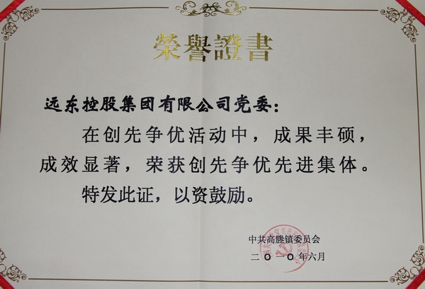 大会首先颁发了在创优争先活动中先进集体的荣誉证书,远东控股集团党群工作部主任徐建君代表远东上台领奖。