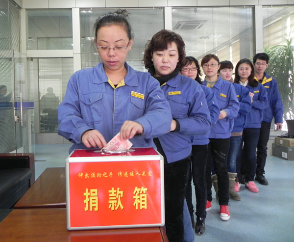 徐工重型营销公司党委书记郑彤得知汤俊雨的病情和家庭情况后,紧急组织了爱心捐款活动,号召公司全体营销系统员工积极奉献自己的爱心、用爱帮助他渡过难关。10元、50元、100元、500元……无论是领导干部,还是基层员工,都自发的走到捐款箱前,献出自己的爱心,短短的1天时间就募集善款5万余元。