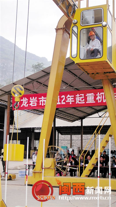 11月19日—20日我市举行2012年起重机作业人员职业技能竞赛,来自全市16家企业的37名职工参加了比赛。此项比赛由我市在全省率先举办,是按照国家职业资格三级(高级工)标准进行的。近年来,龙岩市质监、特检部门狠抓企业特种设备安全责任落实,从强化特种设备作业人员技能水平入手,确保企业安全生产。截至目前,全市累计培训起重机作业人员2900人次,并连续多年来实现全市特种设备事故率的零纪录。图为比赛现场。