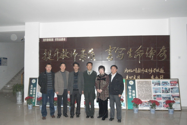 和原八一帐篷学校李校长(右三)、抗震英雄徐正富(左三)等在一起