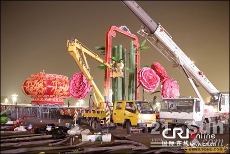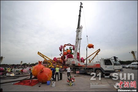 送走中秋迎国庆,近日凌晨,北京天安门广场国庆花坛正式开始搭建,百余人的施工队伍,十几辆大型装载车,刹那间,广场上出现了热火朝天的工作场景。9月20日,北京天安门广场中央庆祝中华人民共和国成立64周年“祝福祖国”大型花果篮造型花坛正在进行拼装,在工作现场,中国工程机械商贸网小编发现了中联重科起重机的身影。这并不是中联重科首次服务天安门,2011年,建党90周年之时,中联重科起重机就曾在天安门广场进行布置红心向党大型立体花坛;2009年中华人民共和国国庆60周年庆典的现场,也正是中联重科的QY90V汽车起重机巨大的臂架擎天支撑拍摄,让全中国和世界人民见证了大阅兵和群众游行的盛况。如此说来,中联重科与天安门的可谓渊源颇深。