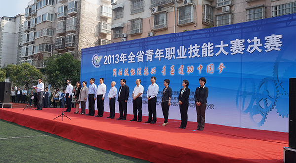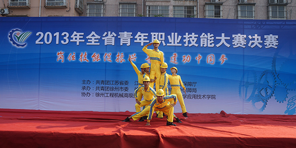9月28日, 2013年江苏省青年职业技能大赛决赛在徐工高级技校拉开帷幕。江苏省人社厅副厅长刘小群、团江苏省委副书记王伟出席开幕式并讲话,徐州市委常委、组织部长杨时云出席开幕式并致辞, 徐州团市委书记张克介绍了大赛筹备工作情况,徐州市委副秘书长周天文、徐州市人社局局长孟铁林、省人社厅职业能力建设处副处长陈静、团省委城工部副部长徐静、徐州市人社局副局长李冬梅、徐工集团党委副书记李格、徐州团市委副书记潘晓、徐工高级技校校长冯跃虹出席开幕式。开幕式上,由徐工集团选送的舞蹈《聚•力》充分展现了当代青工的风采,博得阵阵掌声。