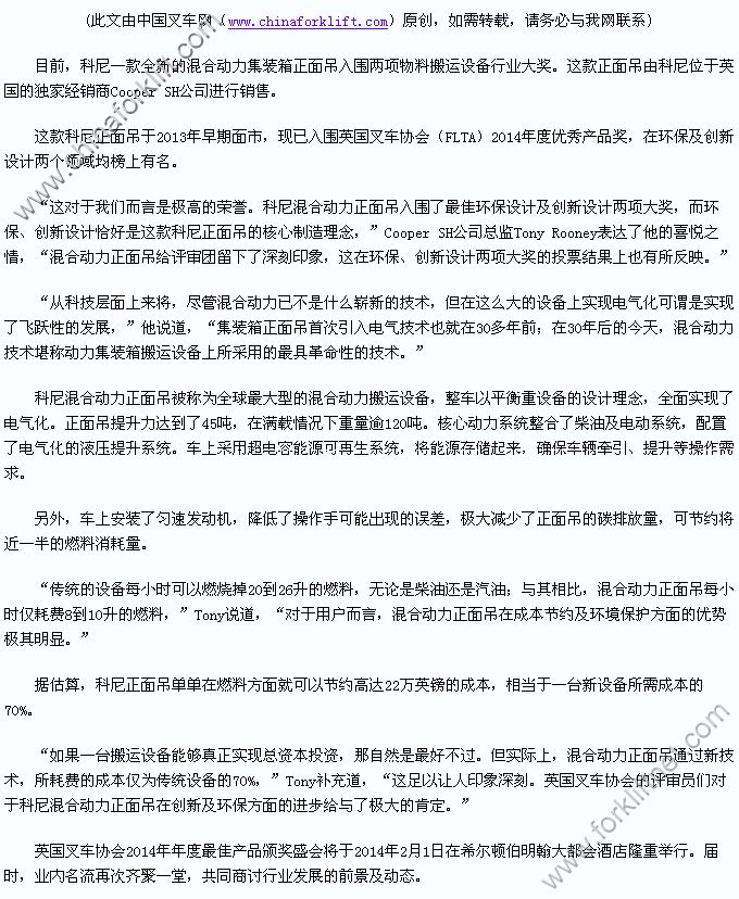 科尼集团是世界领先的起重机设备专业制造商和起重机服务供应商,业务遍及各个领域,包括制造业、加工业、船厂、港口和码头。科尼集团提供各种提升您生产力的起升解决方案和各类起重设备及机床维修服务。 2012 年,科尼集团销售总额达 21.7 亿欧元。集团在 48 个国家 626 个地区拥有 12100 名员工。科尼集团在赫尔辛基( NASDAQ OMX )证券交易所上市(代码: KCR1V )。