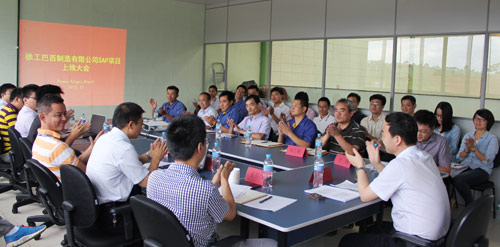 徐工巴西SAP ERP项目7月27日正式启动,先后历时近4个月,于11月5日正式上线运行。项目依靠徐工自身信息化团队的不懈努力和四大事业部的协同支持,克服了地域、语言、文化、时差等多重挑战,整理物料主数据11579条、BOM主数据15540条录、工艺路线6820条,开展培训356人次,实现了产品研发与工艺、生产管理、采购管理、库存管理、销售管理和成本管理等徐工核心管理DNA的成功复制,完成了中英葡三个语言版本的系统部署,为徐工巴西制造公司业务开展提供了高效的管理支撑平台。借助信息化引擎,徐工巴西制造公司企业内部管控水平将大幅提升,本地化融合进程将显著加速。