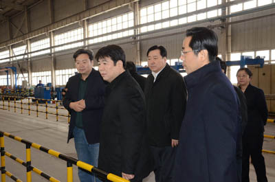王宏江一行在天津金山电线电缆股份有限公司调研时,肯定了金山线缆在加快技术创新,推动企业转型方面所做出的成绩。图为王宏江副市长在金山线缆调研时情景。