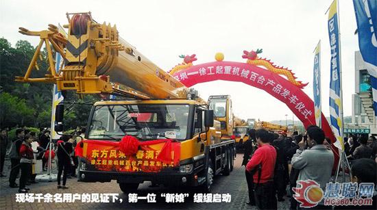 现场最壮观的场景莫过于“新娘集体出嫁”环节。徐工百台起重机产品的发车仪式现场,伴随着阵阵鼓乐声和喜庆的舞龙舞狮表演,礼炮齐发,长如游龙的壮观车队依次驶出。现场用户群情激昂,簇拥着车辆,欢呼着,不断地与壮观的车队合影留念。徐工金在正午的阳光的映射下,铺洒在现场所有的脸上,折射出对新的一年美好的希望。