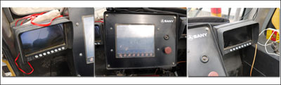 坐在座椅上,驾驶员可以看到三块高清液晶显示屏,左边显示屏可显示起重机卷扬的运行状态。中间的显示屏可显示起重机的各种数据信息,包括工作半径、吊重情况、角度、支腿状态、环境风速等跟吊装有关的所有项目。右侧的显示器装在起重臂上,可从上往下观察设备的吊装情况。根据这些数据,驾驶员可以及时调整起重机,做到安全、高效吊装。同时,驾驶员可以根据自己的使用习惯和不同的使用条件进行个性化的设置。