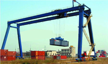 首先对港口的耗能机械设备做了全面的分析和预测,找到了港口行业应用最广泛,使用频率最高的机械设备---龙门吊。龙门吊又称为门式起重机,是桥式起重机的一种变形。主要用于室外的货场、料场货、散货的装卸作业。它的金属结构像门形框架,承载主梁下安装两条支脚,可以直接在地面的轨道上行走,主梁两端可以具有外伸悬臂梁。门式起重机具有场地利用率高、作业范围大、适应面广、通用性强等特点,在港口货场得到广泛使用。但是,传统的龙门吊由柴油发动机组驱动,能量转换效率低、能耗大、成本高。作业的同时,排放的废气黑烟和柴油机运转时产生的巨大噪音以及柴油存放与使用中的环境污染也日益与严格的环保要求有一定的距离。
