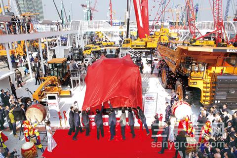 客户亲自体验全新系列路面机械美女主持助阵开场秀三一矿机新品发布会上,嘉宾为SAT40铰接式矿用自卸车揭幕