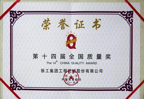 2014年,徐工集团工程机械股份有限公司荣获我国质量管理领域的最高荣誉——“全国质量奖”。全国质量奖是与全球知名的美国波多里奇奖、欧洲质量奖、日本戴明奖齐名的世界级质量管理奖。公司董事长、党委书记王民荣获“中国杰出质量人”奖。12月,公司《大型制造企业集团全价值链协同的信息化提升管理》荣获第二十一届全国企业管理现代化创新成果一等奖,这是全国企业管理创新成果的最高奖。