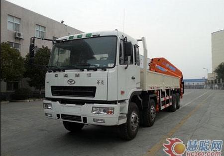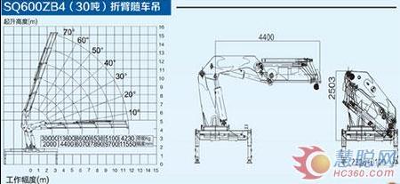 吊机全机高强板,四节液压伸缩臂。前置吊机,伸缩式前支腿和伸缩式双腔后支腿,中心回转360°全回转。油泵、阀锁等液压元件均使用意大利原装进口件,六角折弯成型起重臂。