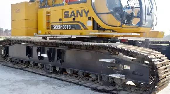 三一SCC8100TB伸缩臂式履带起重机,其属于非路面移动式起重机械,具有伸缩式吊臂,可以在臂长范围内任意调节工作臂长度和幅度,作业时无需拆装。它配置了可伸缩式履带在运输时可以收缩起来,方便运输。作业时履带伸出,以保证整机作业的稳定性能。