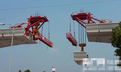 自7月30日,120T桅杆起重机成功安装了上海市轨道交通17号线首段梁后,截止到9月15日,120T桅杆起重机已顺利完成58个节段的架梁任务。该设备在架设现场的出色表现得到业主以及建设方的认可和赞扬,将完成上海市轨道交通17号线,600多段混凝土预制U型节段梁的架设重任。