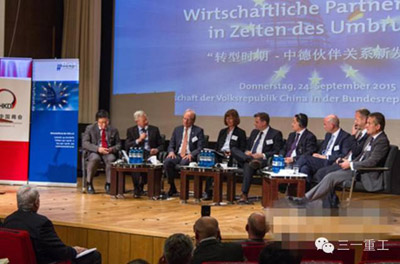 9月24日下午,三一重工代表在德国柏林出席了首届“中德经济对话”,与到会的中德两国政府及企业界人士就两国经贸合作和共同关心的问题进行了对话与交流。“中德经济对话”,由德国基民盟经济委员会(Wirtschaftsrat der CDU)和德国中国商会共同举办。中国驻德国大使史明德、德联邦经济与能源部国务秘书马赫尼希(Matthias Machnig)及其他政企界人士共200余人参与了本次会议。