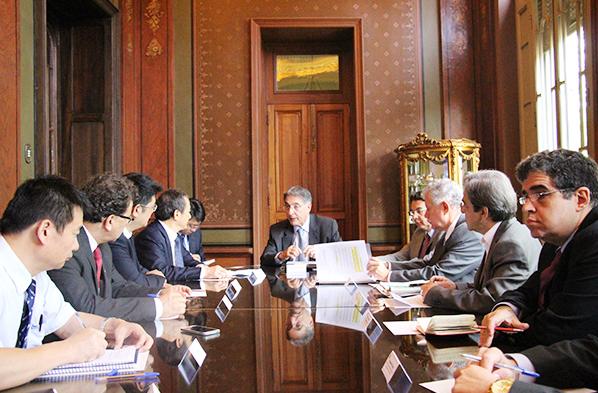 巴西当地时间11月8日,徐工集团董事长王民在巴西MG州首府贝罗,与州长Fernando Pimentel先生进行了友好会谈。州长先生率其内阁成员对王民不远万里来到MG州表示亲切的问候和诚挚的欢迎。
