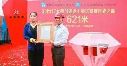 9月,随着最后一方C60高性能混凝土浇筑到596.5米处,天津高银金融117大厦主塔楼核心筒结构成功封顶,这个高度仅次于结构高度601米的迪拜哈利法塔,成为世界结构第二高楼、中国结构第一高楼。此次封顶,三一超高压拖泵再次创造了混凝土单泵垂直泵送新的吉尼斯世界纪录,泵送高度达621米。