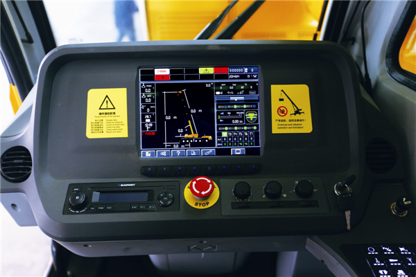 全新的人机交互系统,更是XCT55L6的一大亮点。G一代驾驶室仪表盘,摒弃了传统的机械指针,而是配备了大镜面显示屏,行驶信息通过虚拟仪表界面显示。中控区按钮分布合理,错落有致。操纵室采用集成化总线面板,搭在10寸真彩色触摸屏,能够实时显示发动机转速、卷扬速度、油温等多种信息。